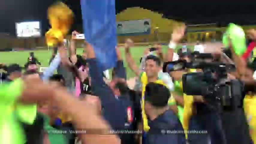 پایکوبی بازیکنان صنعت نفت پس از پیروزی برابر سرخها