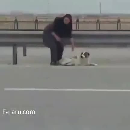 نجات سگ توسط یک خانم از وسط اتوبانی در ایران