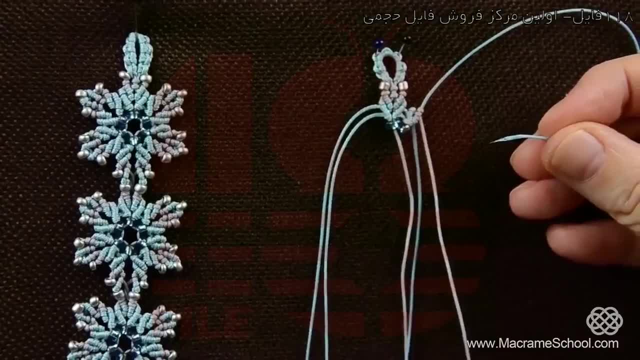 بافت دستبند مکرومه با مهره- دستبند بافتنی-دستبند طرح گل منجمد