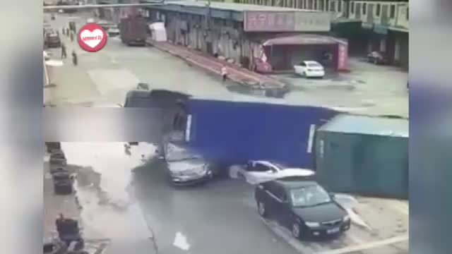 لحظه دلخراش چپ کردن یک تریلی بر روی دو خودرو