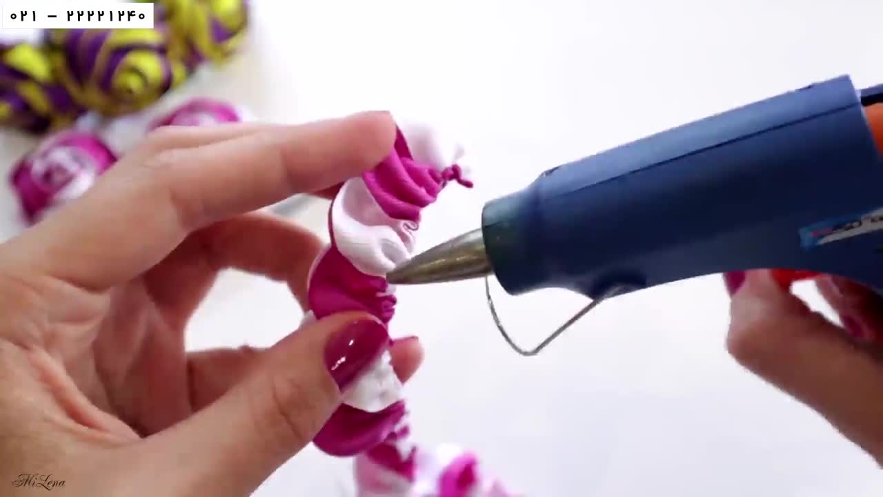 روبان دوزی-الگوی روبان دوزی-آموزش تزئین تل با روبان
