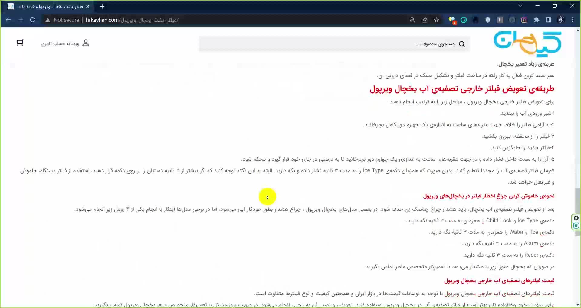 فیلتر پشت آب یخچال ویرپول کیهان