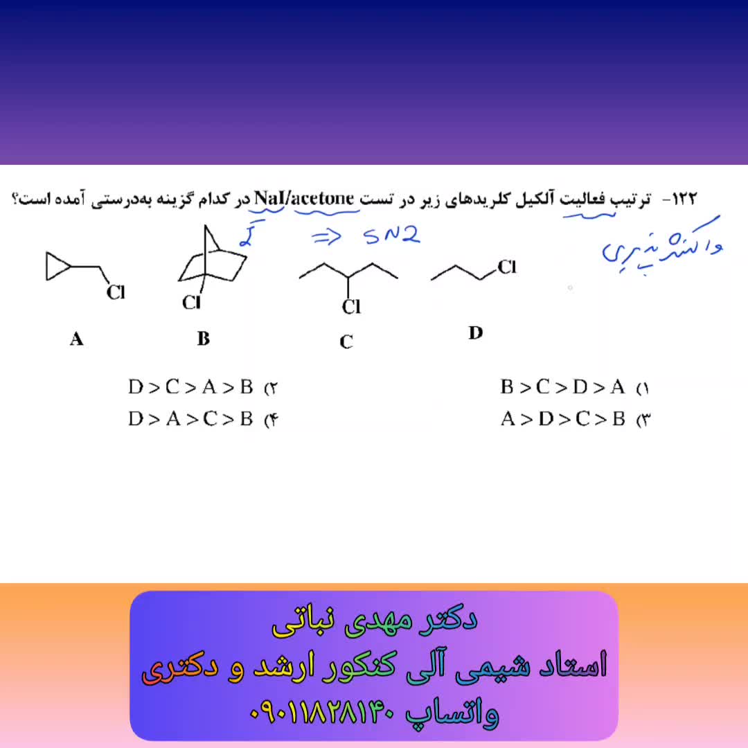 تدریس خصوصی شیمی آلی | استاد نباتی | پاسخ سوال 122 کنکور کارشناسی ارشد 1401