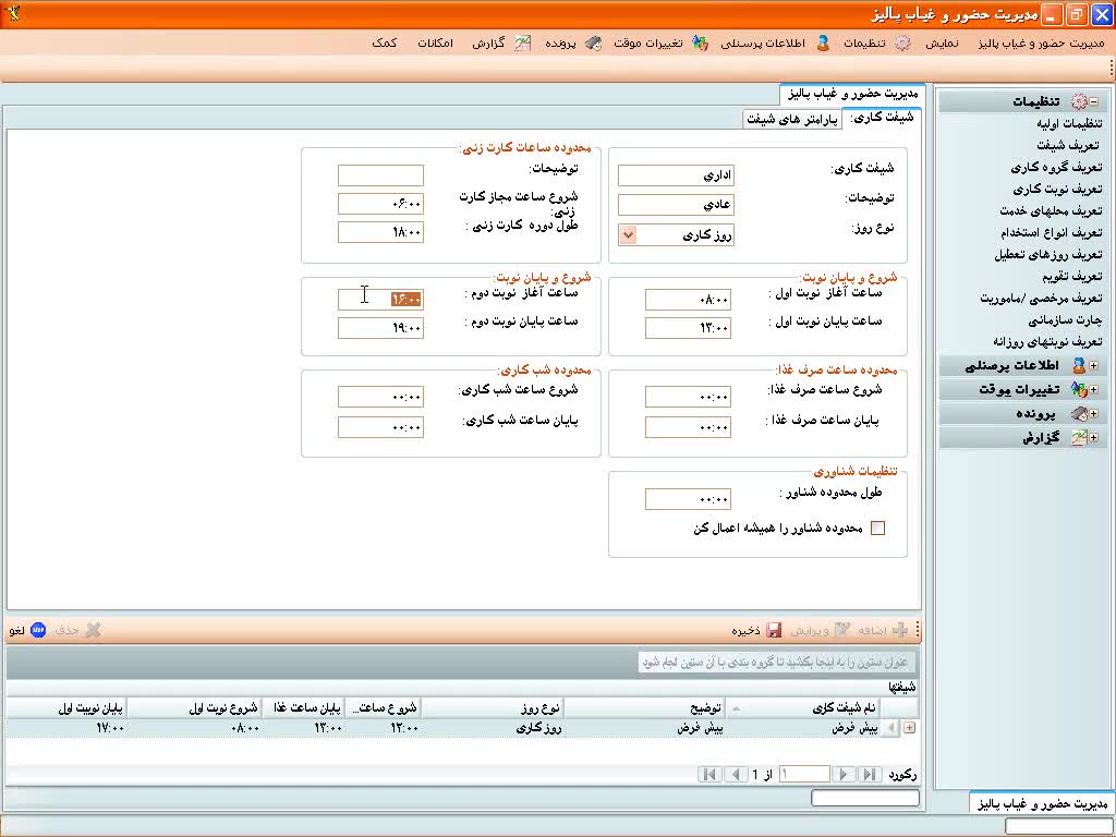 تعریف شیفت های کاری در نرم افزار حضور و غیاب | قسمت 4
