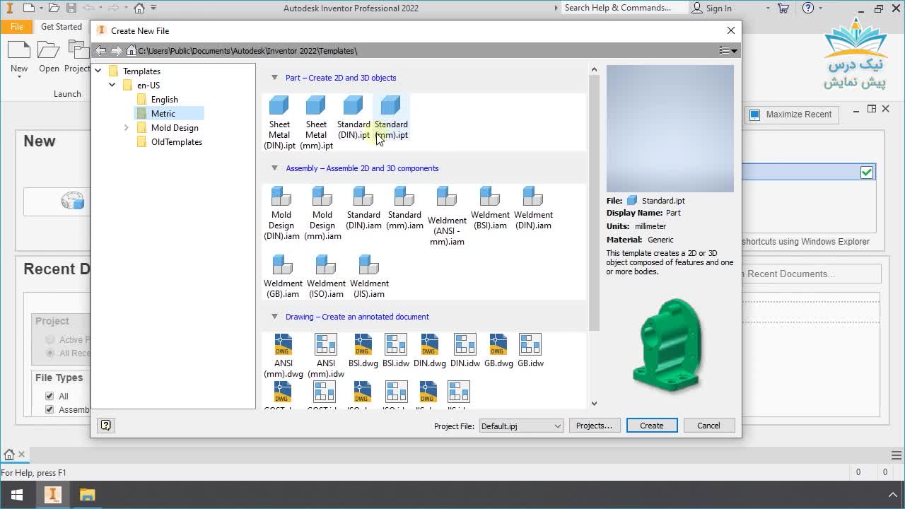 بریده فصل اول آموزش طراحی با نرم افزار Autodesk Inventor - سطح 1