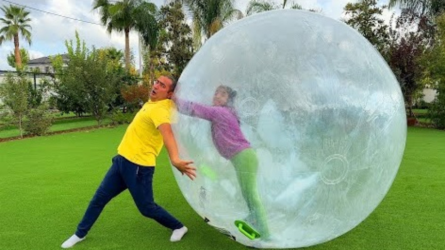 اَسما با توپ غول پیکر بادی سرگرم کننده بازی می کند