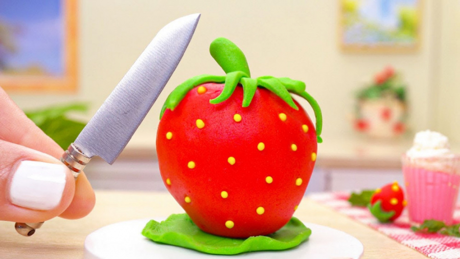 کیک توت فرنگی مینیاتوری - تزیین کیک فوندانت عالی