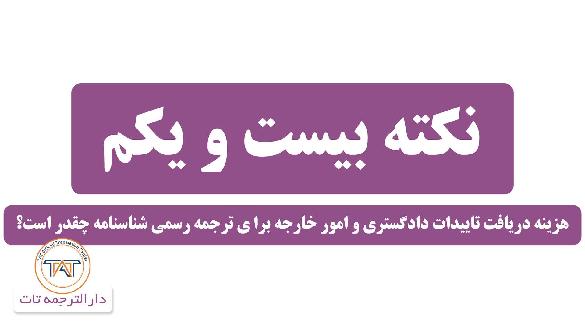 ترجمه رسمی شناسنامه ( هزینه دریافت تاییدات دادگستری و امور خارجه )