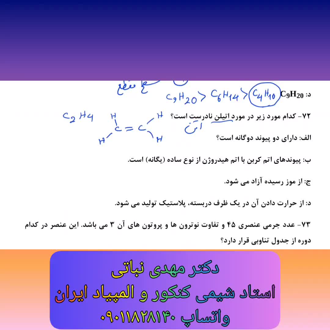 تحلیل و پاسخ سوالات شیمی آزمون ورودی پایه دهم مدارس نمونه دولتی تهران 1401-1402