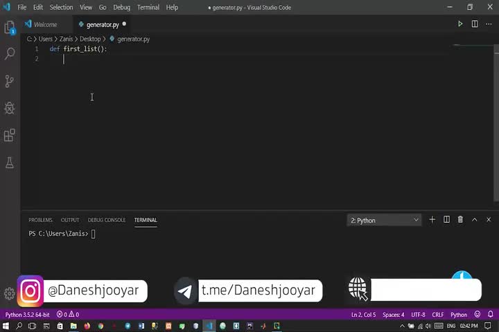 Generator در پایتون،معرفی تابع generator بهمراه ویدئو
