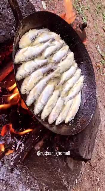 سرخ کردن ماهی کولی در طبیعت گیلان