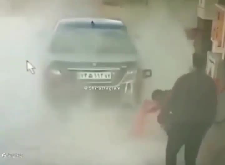 آتش سوزی دنا پلاس در پمپ بنزین و وحشت راننده