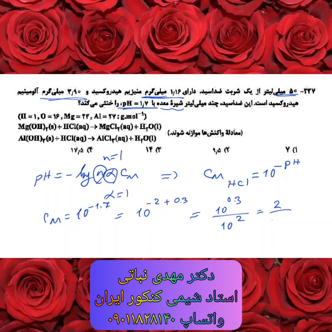 پاسخ تکنیکی سوال 237 کنکور تجربی 1401 ترکیب غلظت محلول ها، استوکیومتری و اسیدها