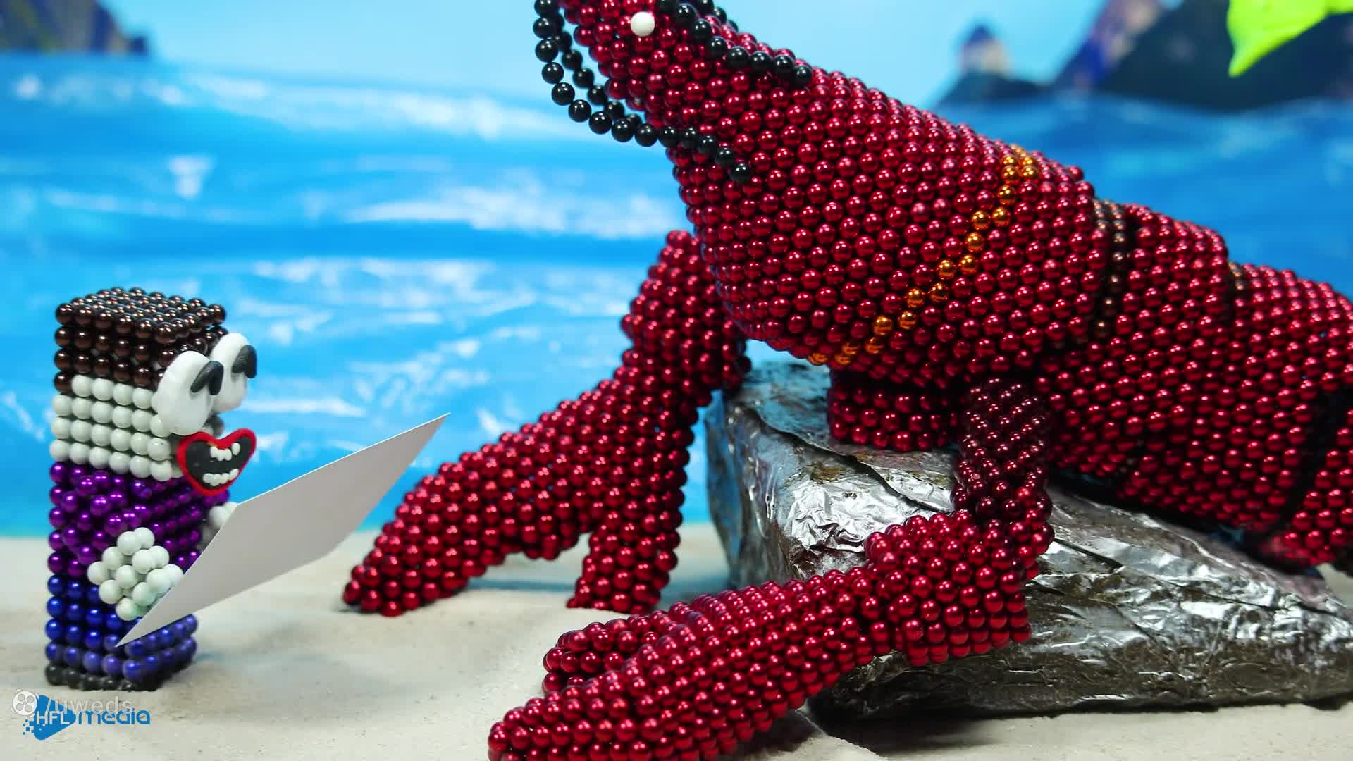 استاپ موشن آشپزی خوردن جوشاندن مغناطیسی غذاهای دریایی