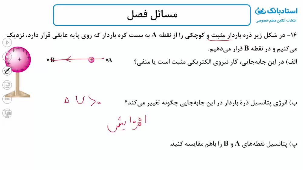 حل تمرین فیزیک یازدهم (پتانسیل الکتریکی) فصل 1 - بخش هشتم - محمد پوررضا - همیار فیزیک