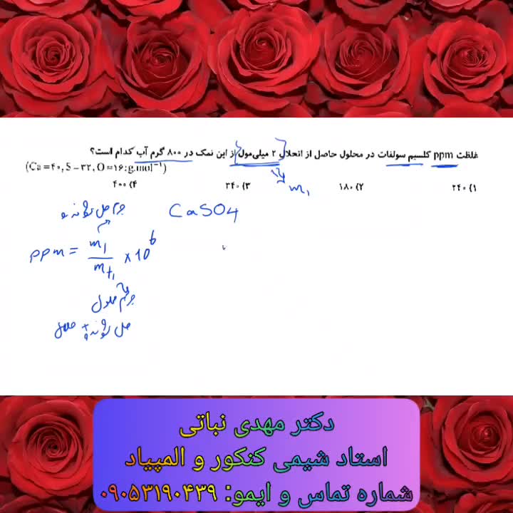تدریس خصوصی شیمی کنکور | استاد مهدی نباتی | محاسبه غلظت ppm محلول ها