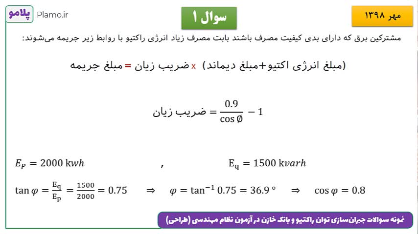نمونه سوالات جبرانسازی توان راکتیو و بانک خازن در آزمون نظام مهندسی-4