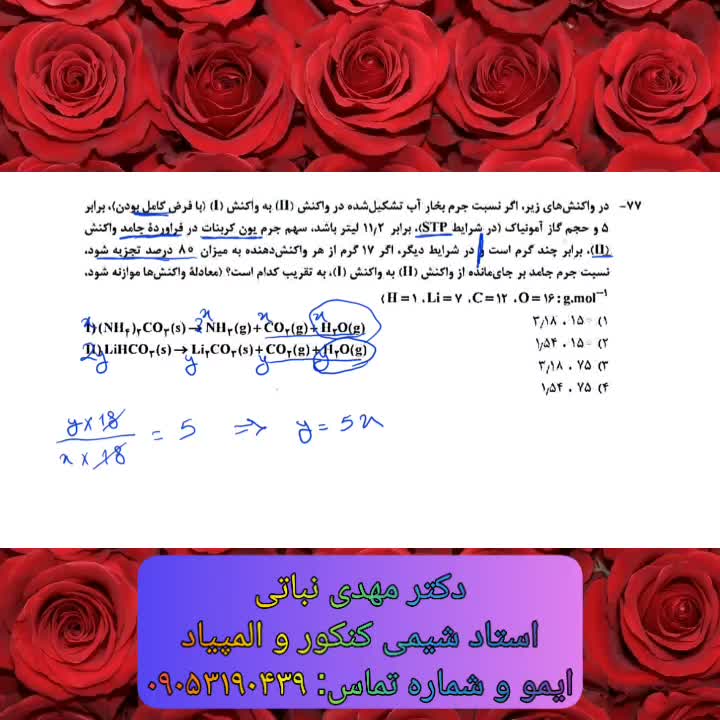 تحلیل سوالات شیمی کنکور تجربی 1402 نوبت اول - پاسخ سوال 77 - استوکیومتری