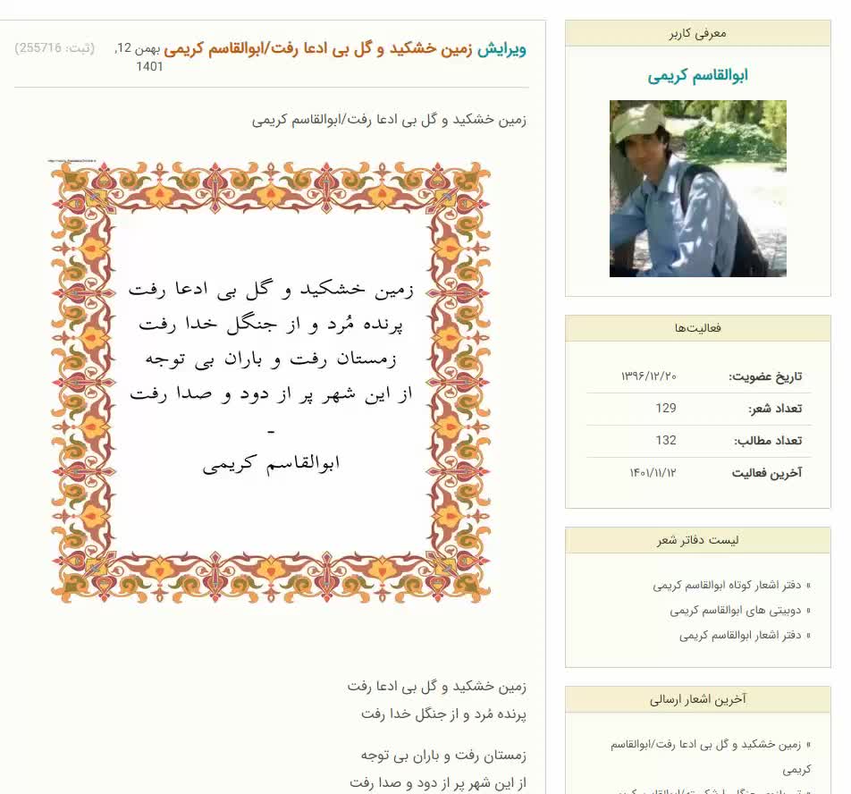 زمین خشکید و گل بی ادعا رفت/ابوالقاسم کریمی