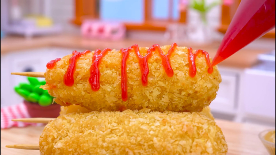 پخت پنیر هات داگ مینیاتوری- بهترین دستور غذای کورن داگ- غذاهای خیابانی کره ای