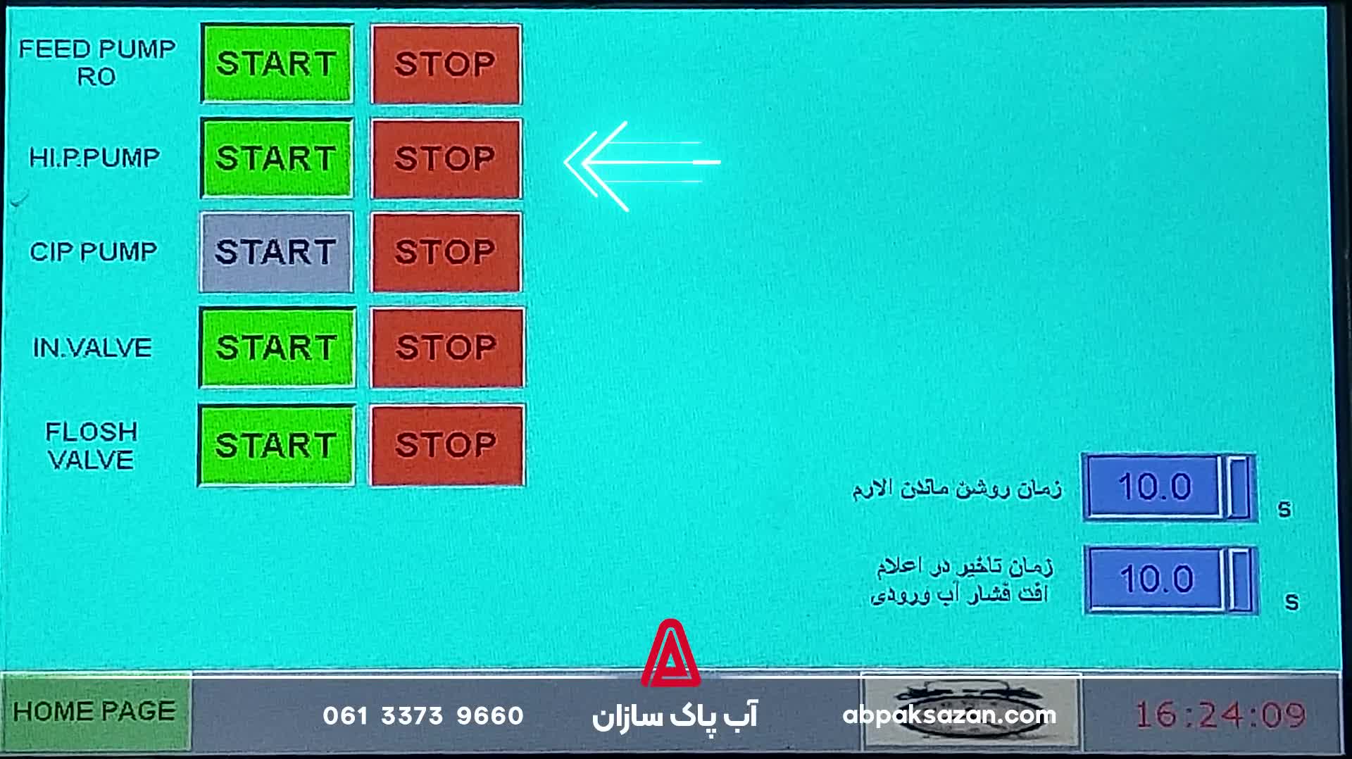 نمایشگر تابلو برق دستگاه تصفیه آب صنعتی