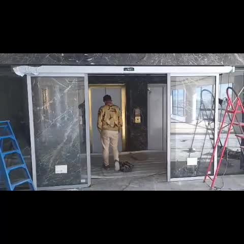 درب اتوماتیک شیشه ای مدل کشویی دو لنگه متحرک