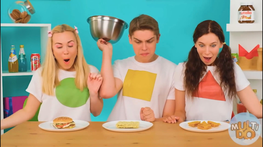 چالش خندهدار نودل خام، همبرگر و چیپس