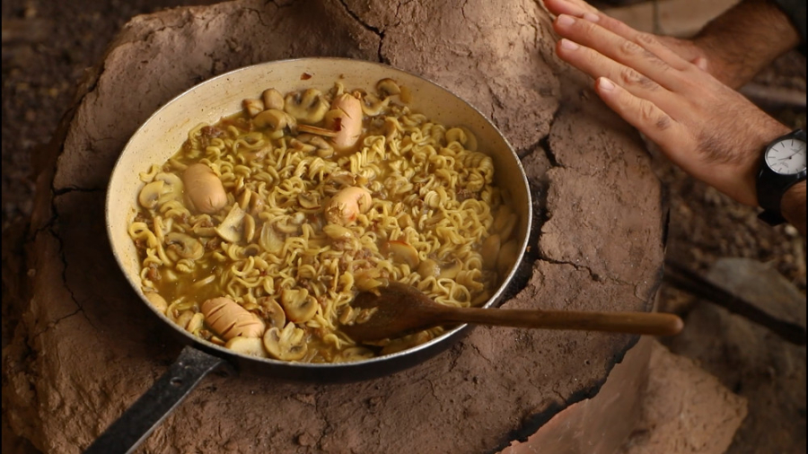 غذای سریع و خوشمزه - نودل گوشت و قارچ