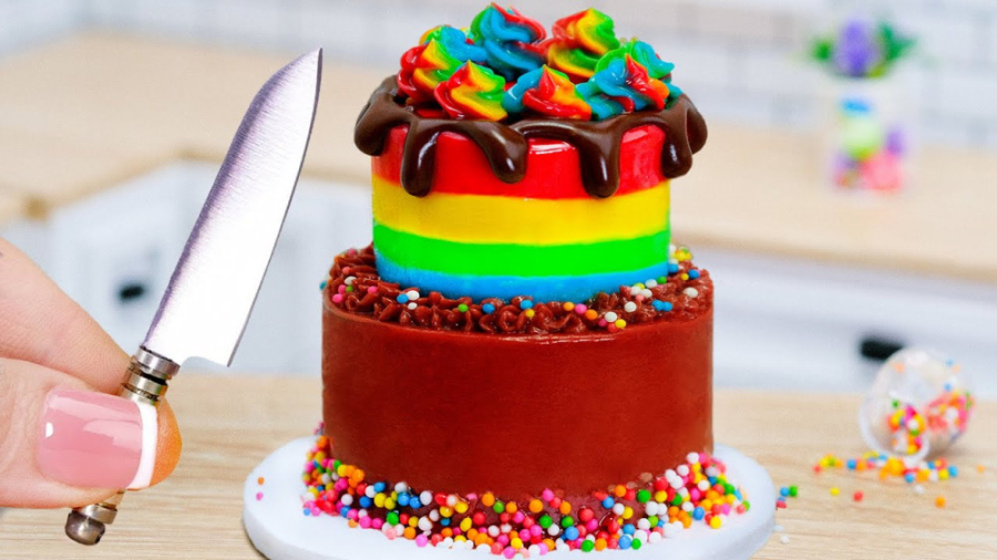 کیک شکلاتی رنگین کمان مینیاتوری