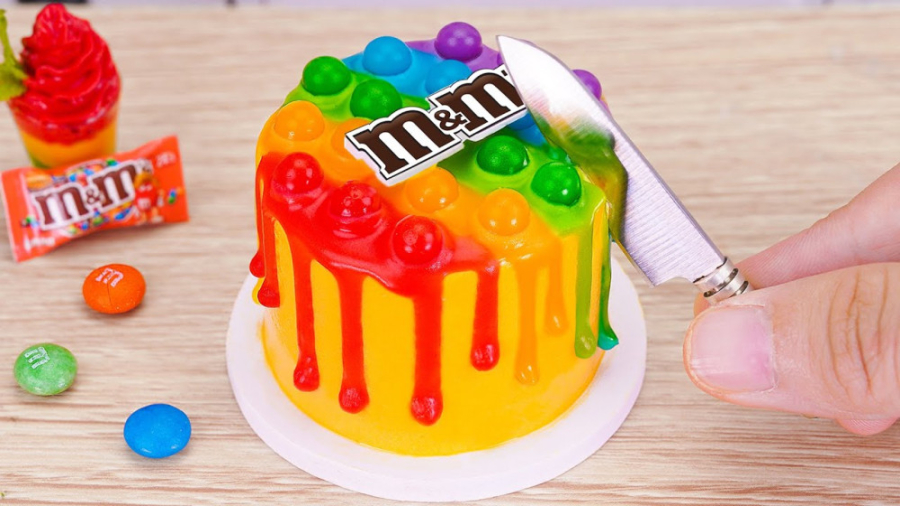 کیک رنگین کمانی با آبنبات ام اند ام مینیاتوری