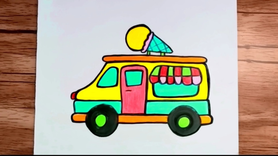 نقاشی ساده و زیبای ماشین بستنی