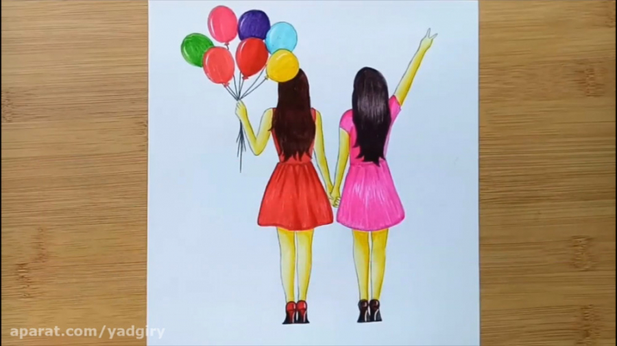 نقاشی مداد رنگی دو دوست