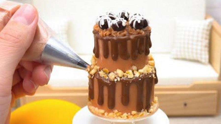 کیک تولد شکلاتی دو طبقه مینیاتوری