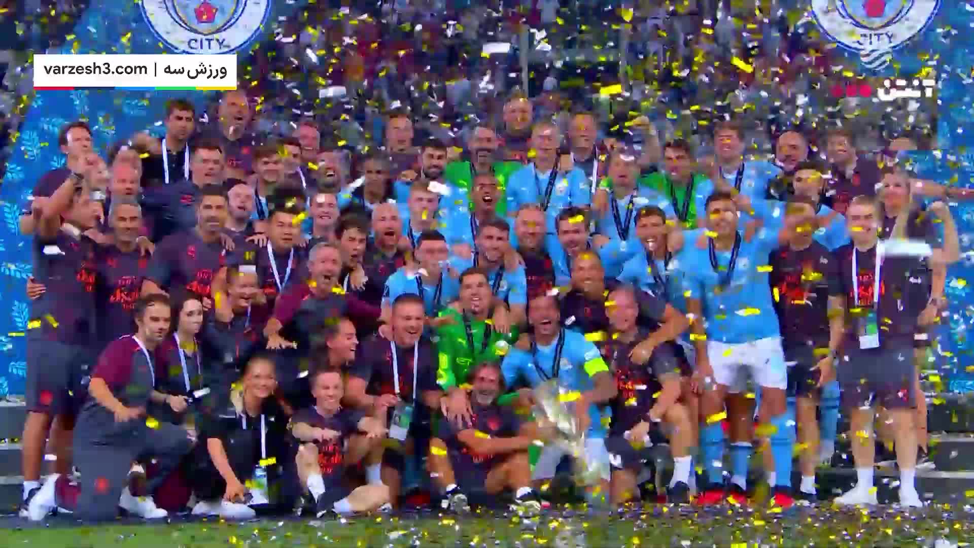 نگاهی به لحظه بالا بردن جام قهرمانی سوپرکاپ اروپا توسط کایل واکر