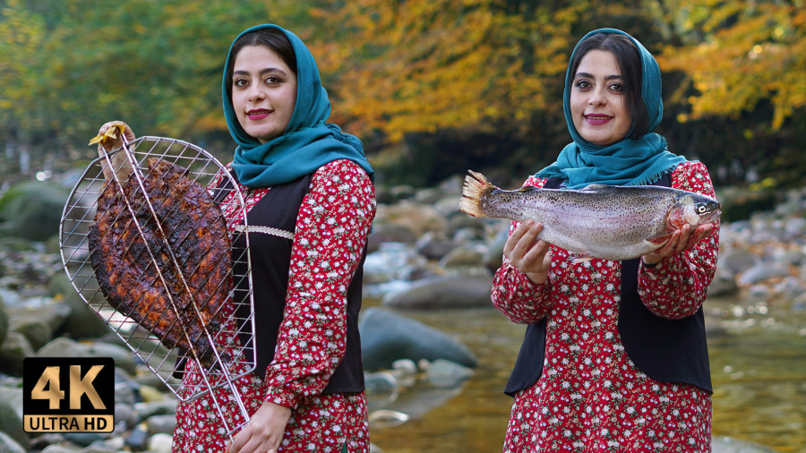 طرز پخت سالمون کبابی در کنار رودخانهای زیبا | آشپزی در طبیعت