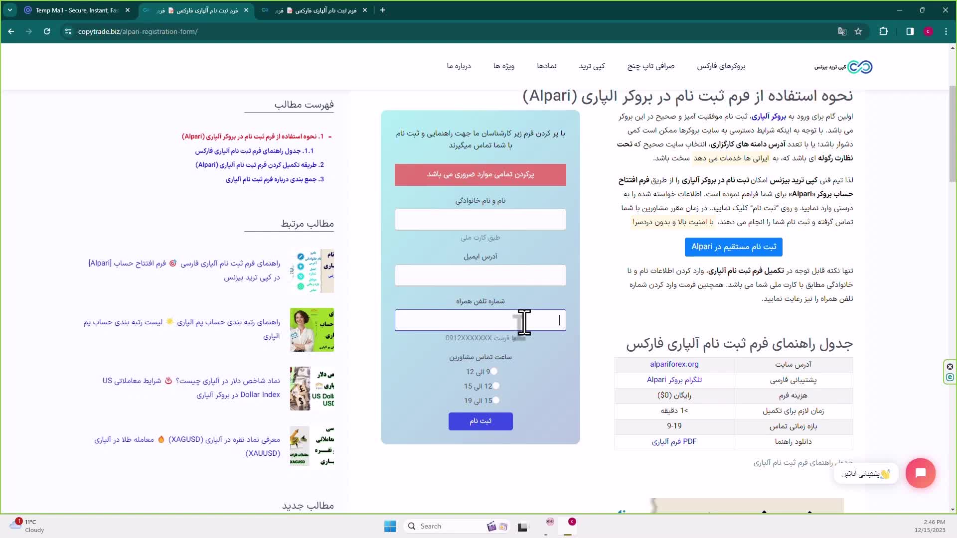 آموزش فرم ثبت نام بروکر آلپاری فارکس 📝 فرم افتتاح حساب بروکر «Alpari» - [شماره 8]