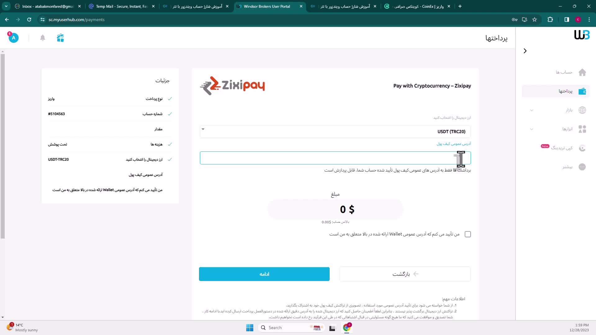 آموزش شارژ حساب ویندزور با تتر (20$)🪙واریز USDT به «windsor» - [شماره 54]