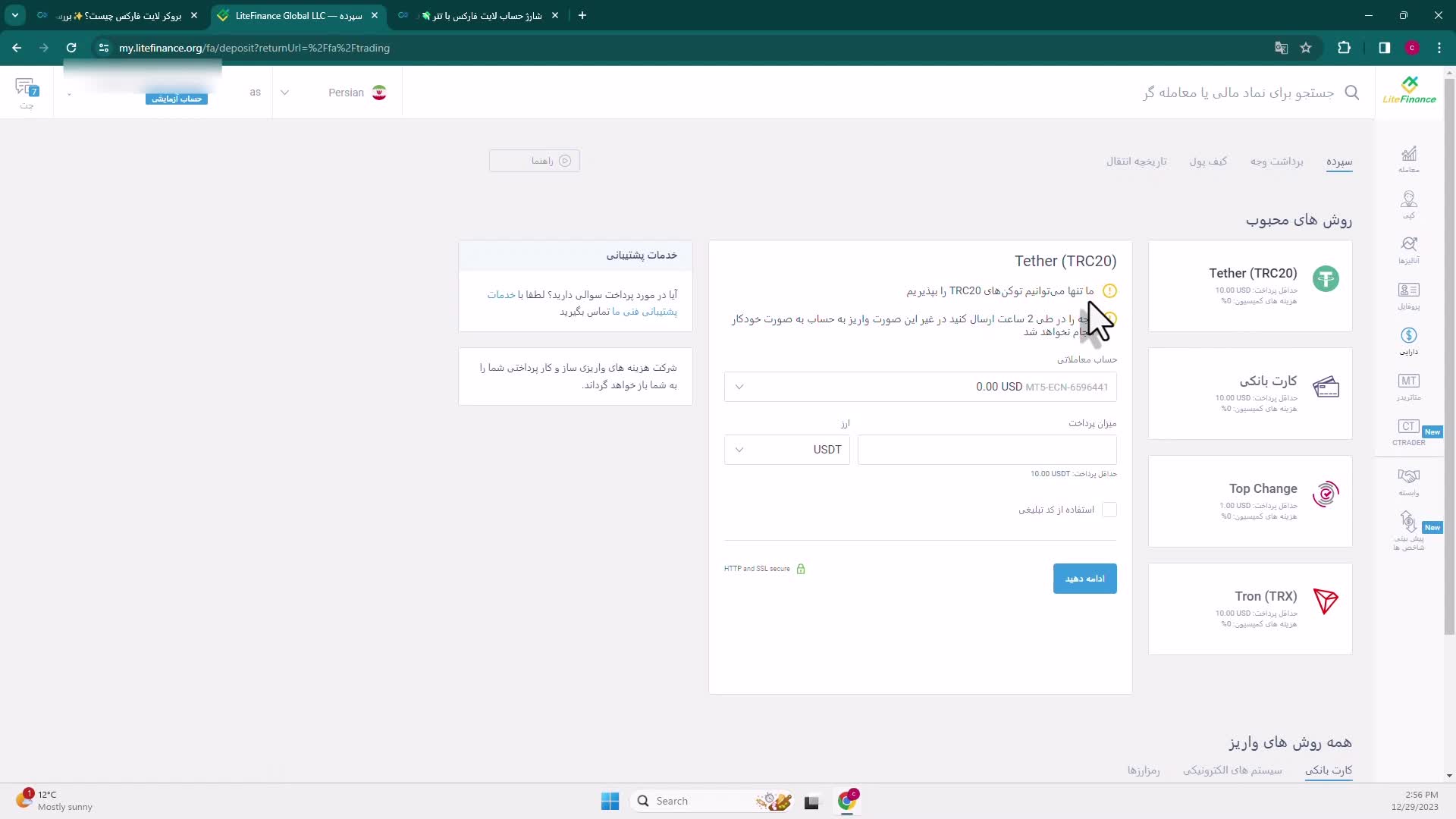 آموزش شارژ حساب لایت فارکس با تتر نحوه واریز USDT به «LiteForex» - [شماره 53]