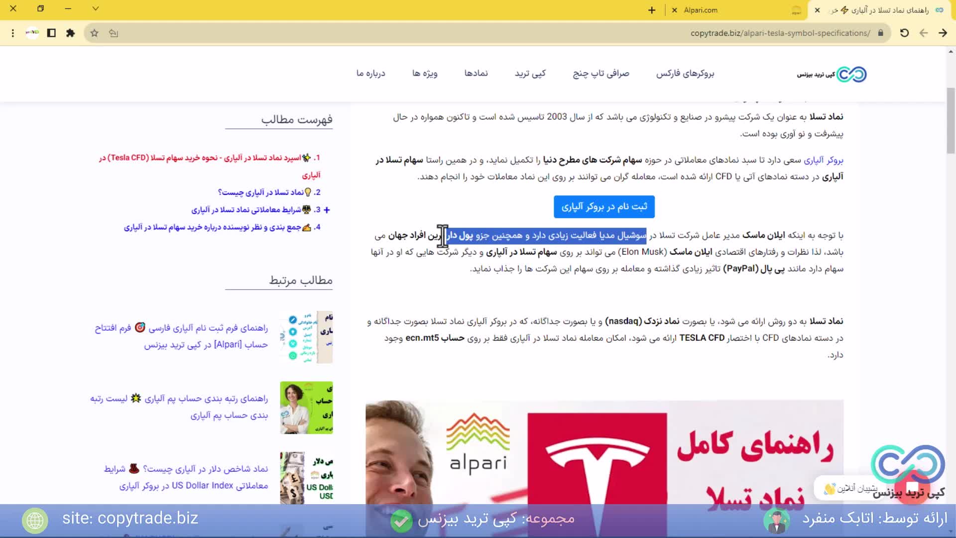 راهنمای نماد تسلا در آلپاری نحوه خرید سهام Tesla در بروکر آلپاری 2024 - [شماره 91]