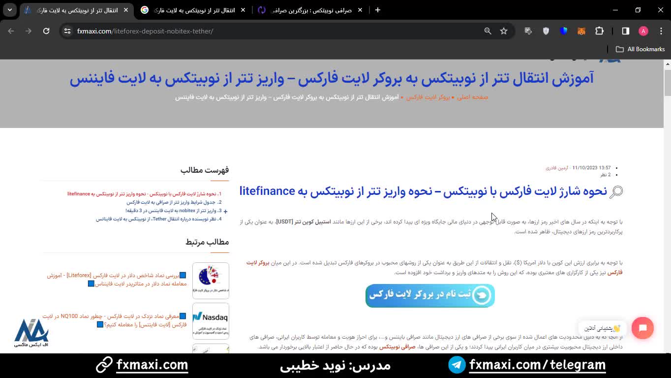 انتقال تتر از نوبیتکس به لایت فارکس [Lite Forex] | ویدئو شماره 52