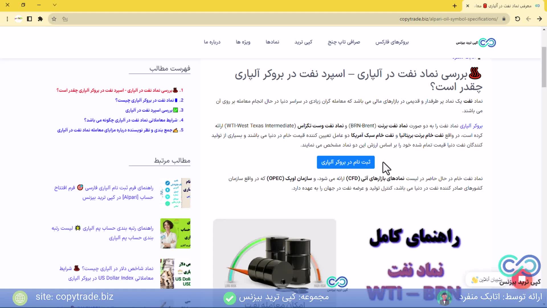معرفی نماد نفت در آلپاری معامله نفت در آلپاری با 0.01 لات (WTI&BRN) - [شماره 96]