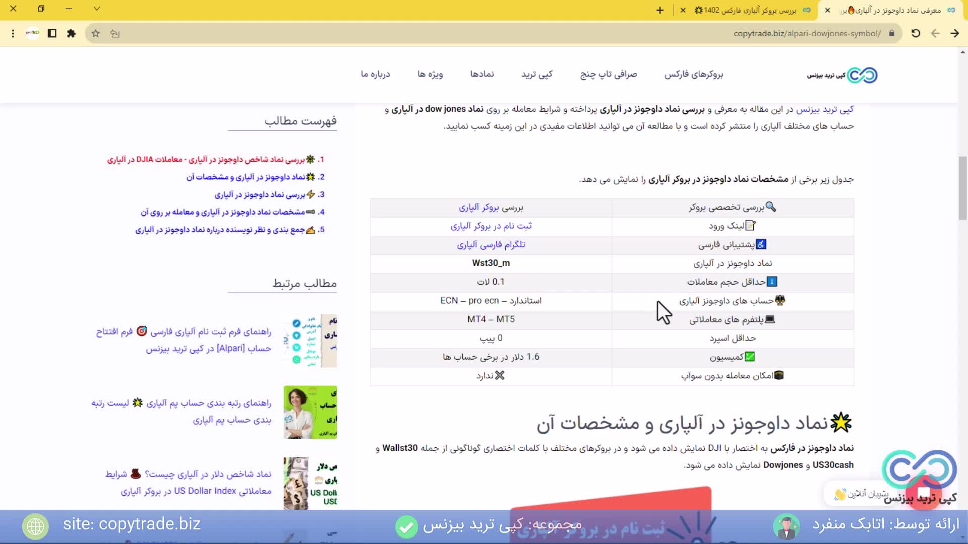 راهنمای نماد داوجونز در بروکر آلپاری مشخصات نماد "WSt30" در بروکر «Alpari» - [شماره 97]