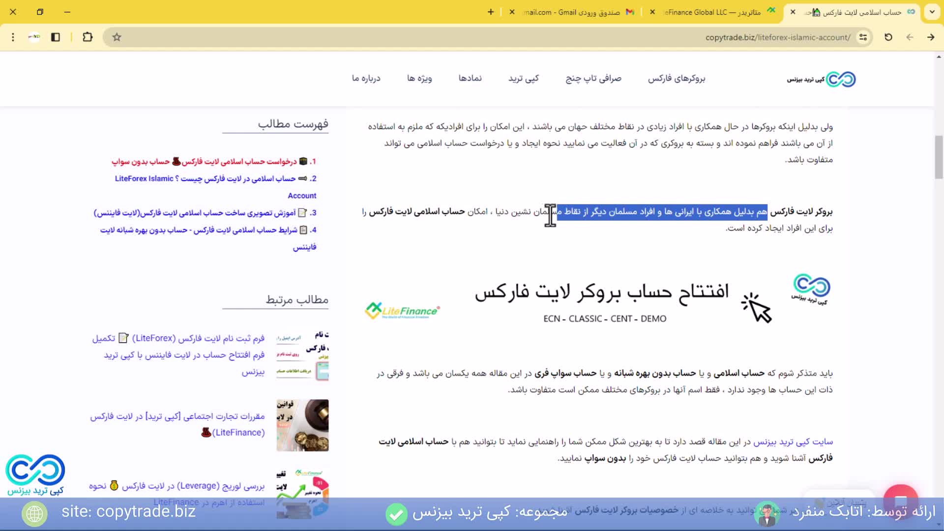 حساب اسلامی لایت فارکس/شرایط حساب بدون بهره شبانه لایت فایننس - [شماره 118]