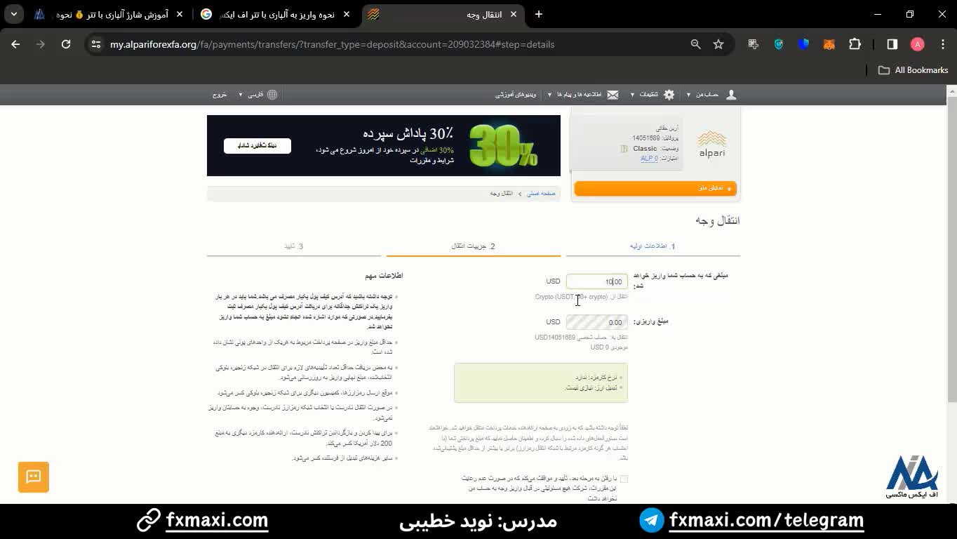 آموزش شارژ آلپاری با تتر - آموزش نحوه برداشت از آلپاری با تتر | ویدئو شماره 102