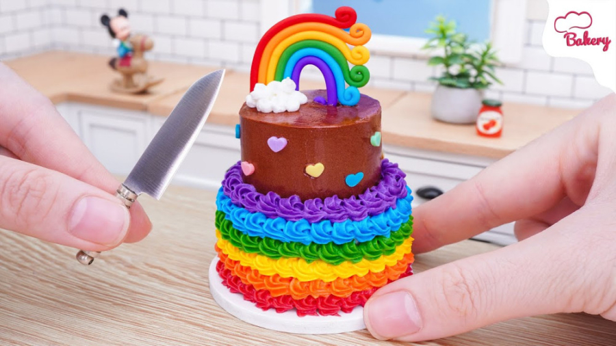 کیک شکلاتی رنگین کمانی دو طبقه مینیاتوری