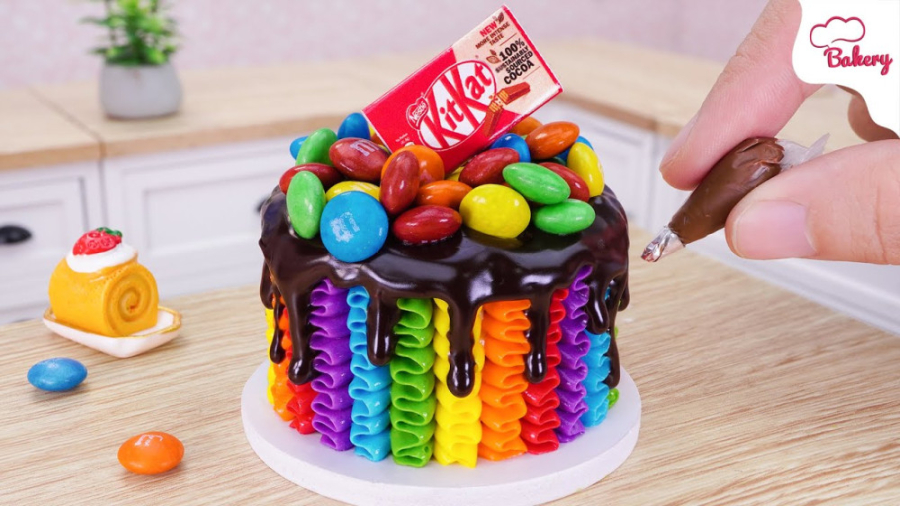 تزئین کیک مینیاتوری با شکلات رنگین کمان