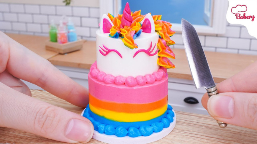 تزیین کیک مینیاتوری رنگین کمان تکشاخ