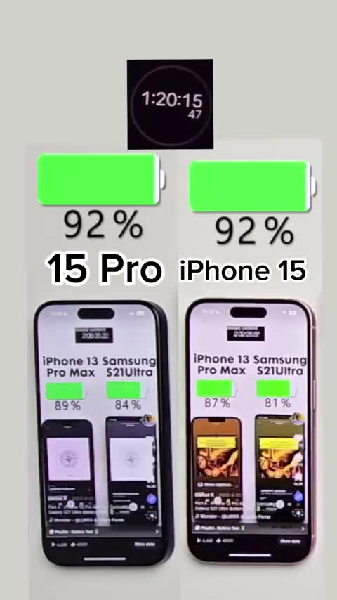 مقایسه باتری آیفون 15 و 15 پرو در مرکز باتری