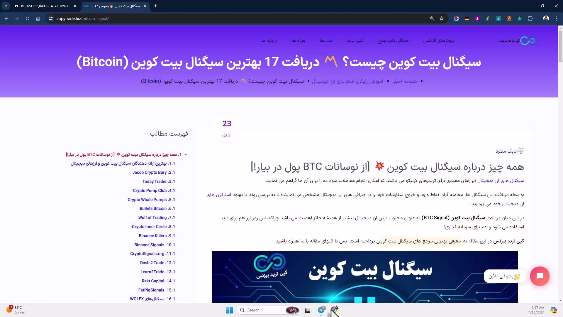 سیگنال ارز دیجیتال بیت کوین [1450$ سود در یک روز با کپی ترید بیزنس!]