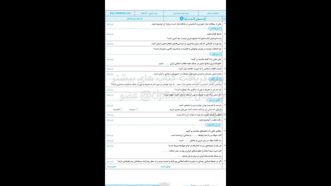 خرید کتاب شب امتحان پیام های آسمان نهم خیلی سبز